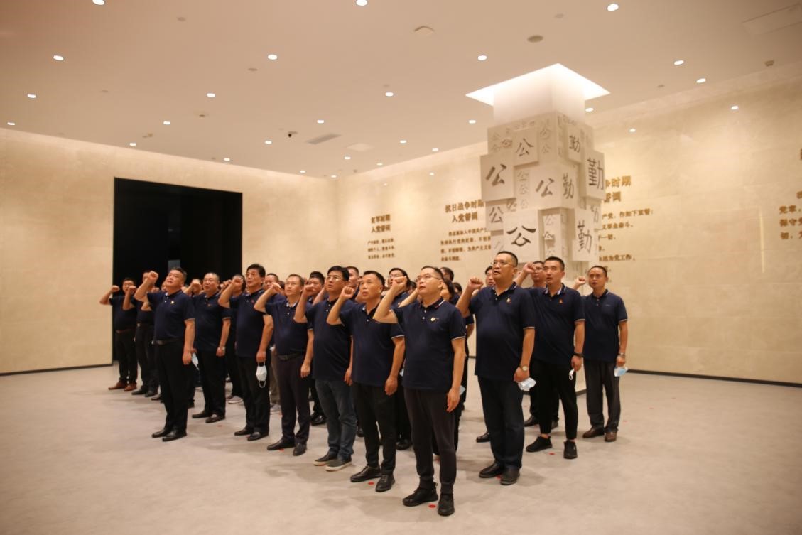 在宣誓廳,參觀人員面對鮮艷的黨旗重溫入黨誓詞,回憶感悟不忘初心、牢記使命的責(zé)任感。