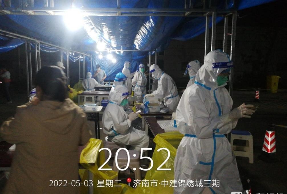 在槐蔭區(qū)錦繡睿城社區(qū)和錦繡城社區(qū),志愿團(tuán)隊(duì)由劉貴武帶隊(duì),閆春貞、李登哲、侯志強(qiáng)、劉欣、張現(xiàn)錄6人組成,他們兵分兩組,每天早上5點(diǎn)30分出發(fā),到達(dá)社區(qū)后立即開(kāi)始準(zhǔn)備核酸檢測(cè),“請(qǐng)大家排好隊(duì)”、“請(qǐng)保持1米距離”、“請(qǐng)?zhí)崆按蜷_(kāi)健康碼”......在核酸采樣現(xiàn)場(chǎng),志愿者們穿著隔離衣,戴著口罩,這樣的提醒引導(dǎo)要重復(fù)幾百次,不一會(huì)兒就口干舌燥,但是他們堅(jiān)持耐心引導(dǎo),把疫情防控放在第一位,按規(guī)定進(jìn)行消殺,提醒居民保持距離,和病毒賽跑和戰(zhàn)斗,不能有絲毫馬虎和懈怠。他們一直工作到晚上近10點(diǎn),每天回到住處已經(jīng)很晚了,但第二天依然按時(shí)到達(dá)社區(qū)。劉貴武說(shuō),“醫(yī)務(wù)工作者和社區(qū)工作者比我們堅(jiān)守的時(shí)間更長(zhǎng),他們更辛苦!我作為一名預(yù)備黨員,槐蔭隊(duì)的隊(duì)長(zhǎng),更應(yīng)該沖鋒在前,帶領(lǐng)大家圓滿完成任務(wù),接受黨組織的考驗(yàn)?!?span style="text-indent: 24pt;">