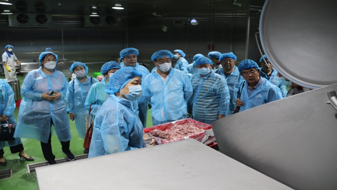 座談會召開之前,王浩濤書記等領(lǐng)導(dǎo)帶領(lǐng)老黨員代表現(xiàn)場參觀了長清食品產(chǎn)業(yè)園。在園區(qū)內(nèi)各生產(chǎn)車間現(xiàn)場,寬敞明亮的車間環(huán)境、一排排整齊劃一的流水線設(shè)備,統(tǒng)一著裝精神抖擻的員工們,讓老黨員代表眼前一亮,心潮澎湃,感慨萬千,大家感慨:金德利快餐終于從手工作坊跨越到現(xiàn)代化工廠生產(chǎn),這樣的改變是原來不敢想像的,大家對未來發(fā)展前景充滿信心和期待。