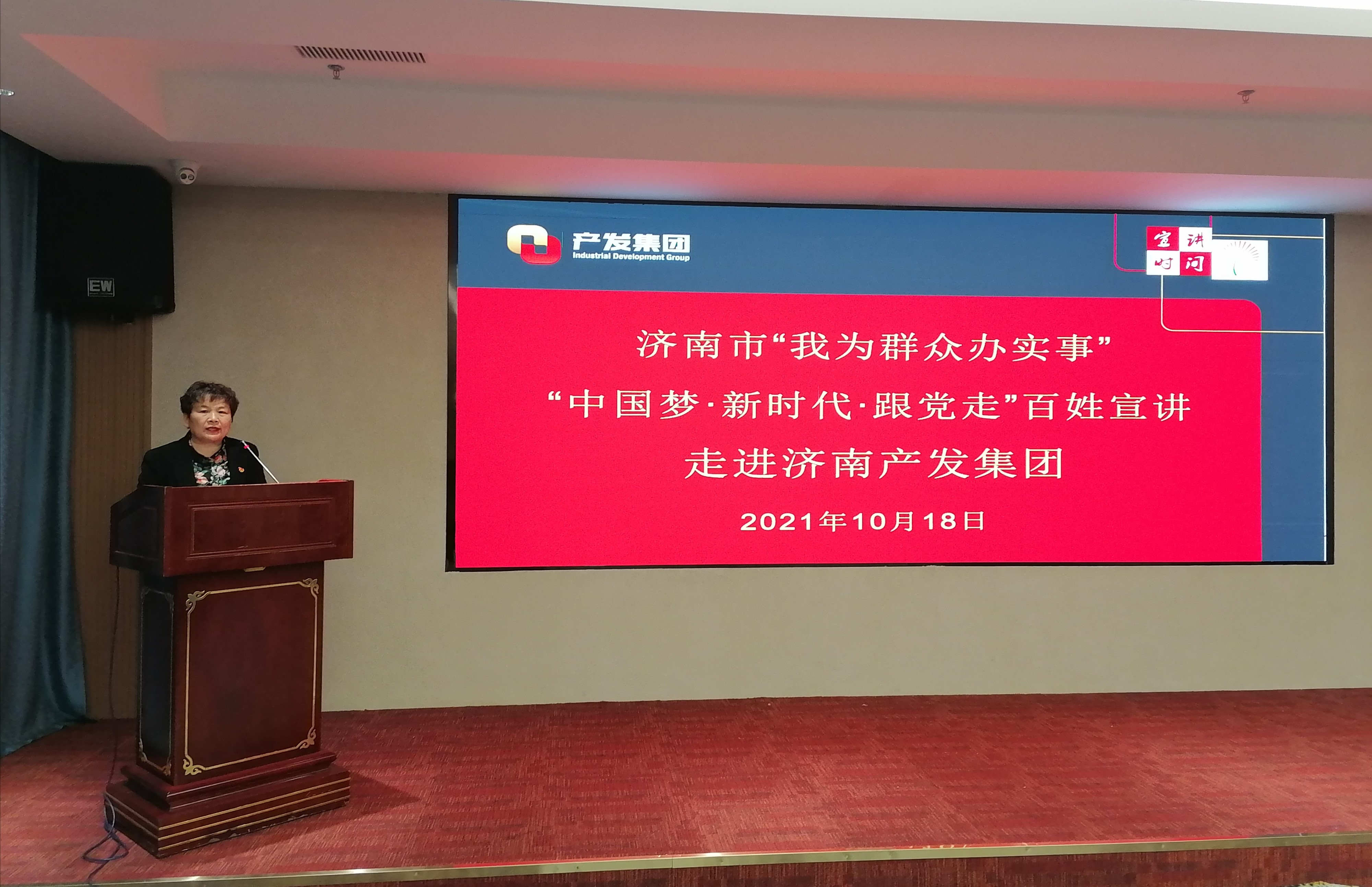 為深入貫徹落實(shí)習(xí)近平總書記“七一”重要講話精神,扎實(shí)推進(jìn)黨史學(xué)習(xí)教育“我為群眾辦實(shí)事”活動(dòng),10月18日下午,濟(jì)南市“我為群眾辦實(shí)事”“中國(guó)夢(mèng)·新時(shí)代·跟黨走”百姓宣講活動(dòng)走進(jìn)濟(jì)南產(chǎn)發(fā)集團(tuán)。在市委講師團(tuán)副處級(jí)干部呂桂紅的率領(lǐng)下,“我為群眾辦實(shí)事”百姓宣講團(tuán)的6位宣講員用他們的親歷、親聞、親為,為產(chǎn)發(fā)集團(tuán)50余名參會(huì)干部職工講述“聽(tīng)黨話、跟黨走、率先垂范、主動(dòng)擔(dān)當(dāng)、無(wú)私奉獻(xiàn)”的動(dòng)人故事。